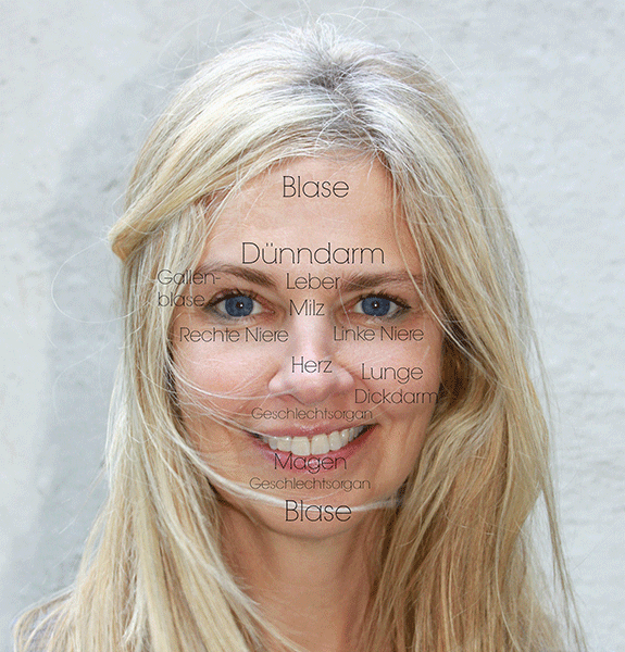 In der Gesichtsdiagnose der TCM haben einzelnen Bereiche des Gesichts eine Zuordnung zu den 5 Elementen, den Organen, den Funktionskreisen / Meridianen, ja selbst bis hin zu den Lebensjahren des Patienten.